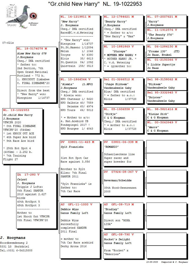安特衛普全省大中距離幼鴿王亞軍(“新哈利”子代)
