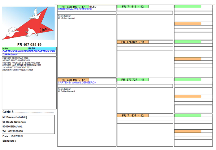 2021年聖維仙國際賽(成鴿)7月12日集鴿,因天氣延後1日,7月17日(星期六)早上7點20分放鴿,交鴿總數8.269羽,包含(法國4.387羽、比利時3.080羽、德國774羽、盧森堡28羽)。
