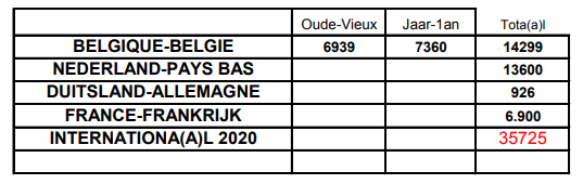 鴿數:總交數鴿35.725羽(含荷蘭13.600羽、比利時14.299羽、法國6.900羽、德國926羽),較去(2020)年300.70羽多出5.655羽。