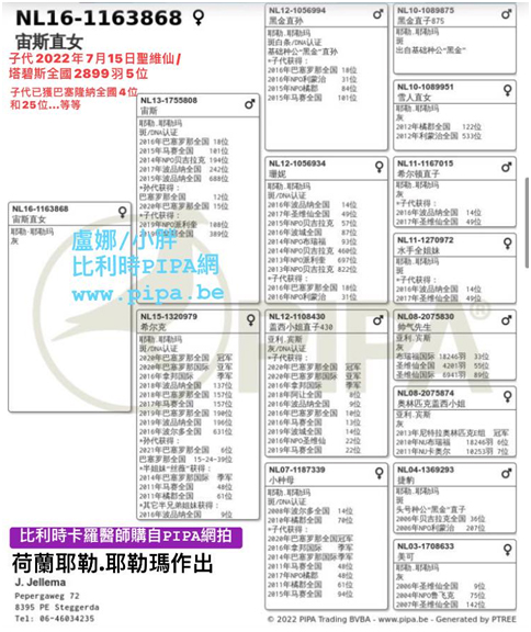 2022年7月2日阿讓國際賽:比利時卡羅醫師作出的鴿子佳績頻傳如下: