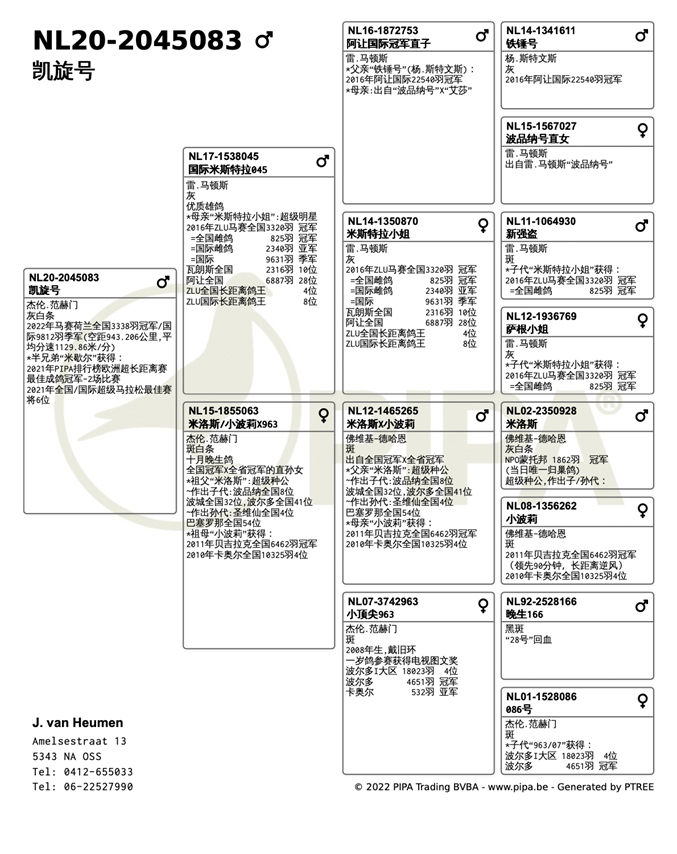 荷蘭成鴿全國3.338羽冠軍-傑倫.範赫門( van Heumen Jeroen )鴿舍,該舍冠軍鴿NL20-2045083灰白羽.公.在7月25日(星期一)凌晨2時54分完成打鐘,空距為943.206公里,平均分速為1129.86米/分。