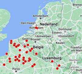從上面的描述可以看到,巴騰伯格-米衛在波品納賽的表現非常出色。參賽鴿於8月6日星期六早上7:30放飛,雨果的首羽歸巢鴿於8月7日星期日08:12:37抵達克拉斯瓦爾(空距1.023公里),平均分速988米/分。這羽全國亞軍鴿很特別,與全國冠軍差不多(兩家鴿舍的距離僅2公里),都成功地完成瞭如此長距離的飛行(見下圖鹿特丹的兩個紅點。)