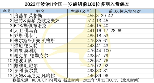 2021年比利時波治II全國賽,集鴿日7月28日,總參賽羽數為41.804羽,其中包括(成鴿7.606羽和一歲鴿10.366羽及幼鴿組23.832羽),較去(2021)年參賽總數39.072羽多2.732羽,於7月30日(星期六)早上7點30分放鴿。