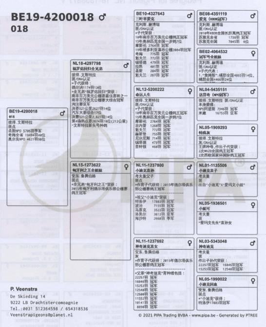 2018年波品納全國3966羽49位 –國際 12,349羽 164位。