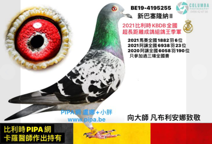 2021年比利時K.B.D.B.超長距離成鴿組全國鴿王季軍 B19-4195255斑公