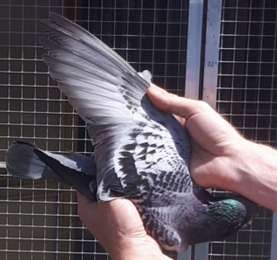 B21-2061050灰公獲得全國幼鴿組14.315羽總冠軍的翅羽。