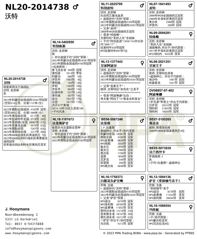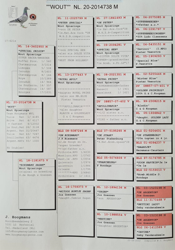 冠軍鴿“WOUT”NL20-2014738灰公 ”沃特”