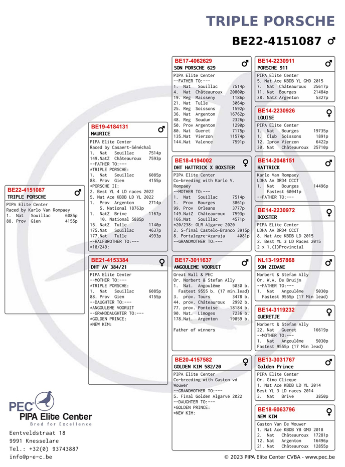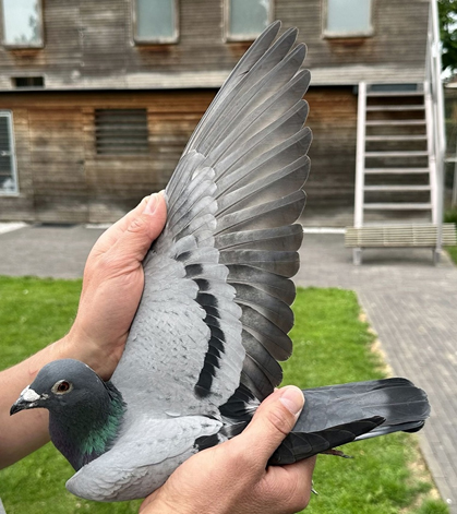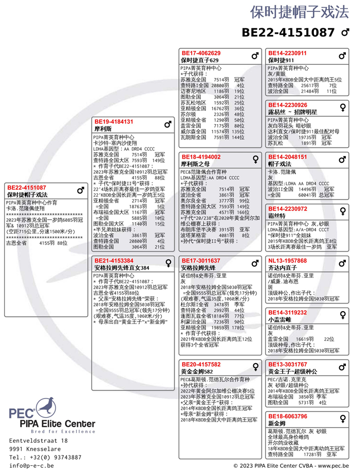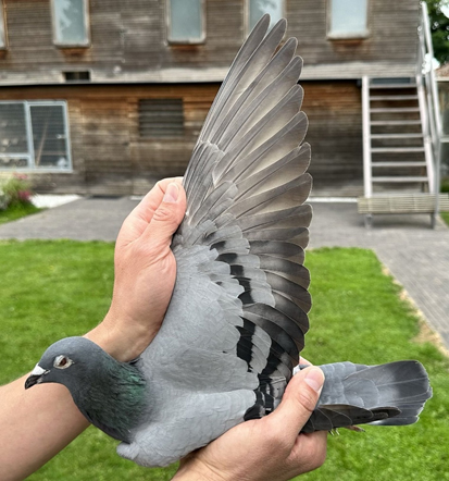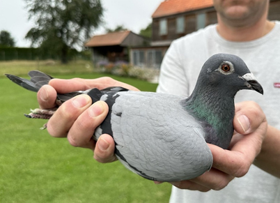 獲得比利時2023年蘇雅克"一歲鴿6.085羽"全國冠、亞軍-是卡洛.範隆佩(Van Rompaey Karlo) (Sint-Truiden)鴿舍,該舍冠軍鴿B22-4151087灰公是在7月30日(星期日)下午14時52分19秒完成打鐘,空距為715.821公里,平均分速為1500.04 米/