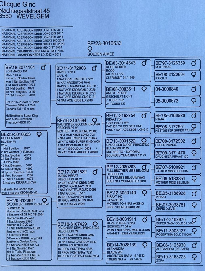 比利時成鴿全國冠軍- : Clicque Gino () (Wevelgem)