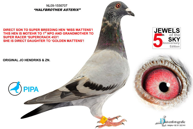 直仔NL04-5400856”最愛856”,入賞雷塔爾2萬羽以上2次冠軍及蕾姆斯17.437羽冠軍。3次超過1萬羽以上競翔冠軍。