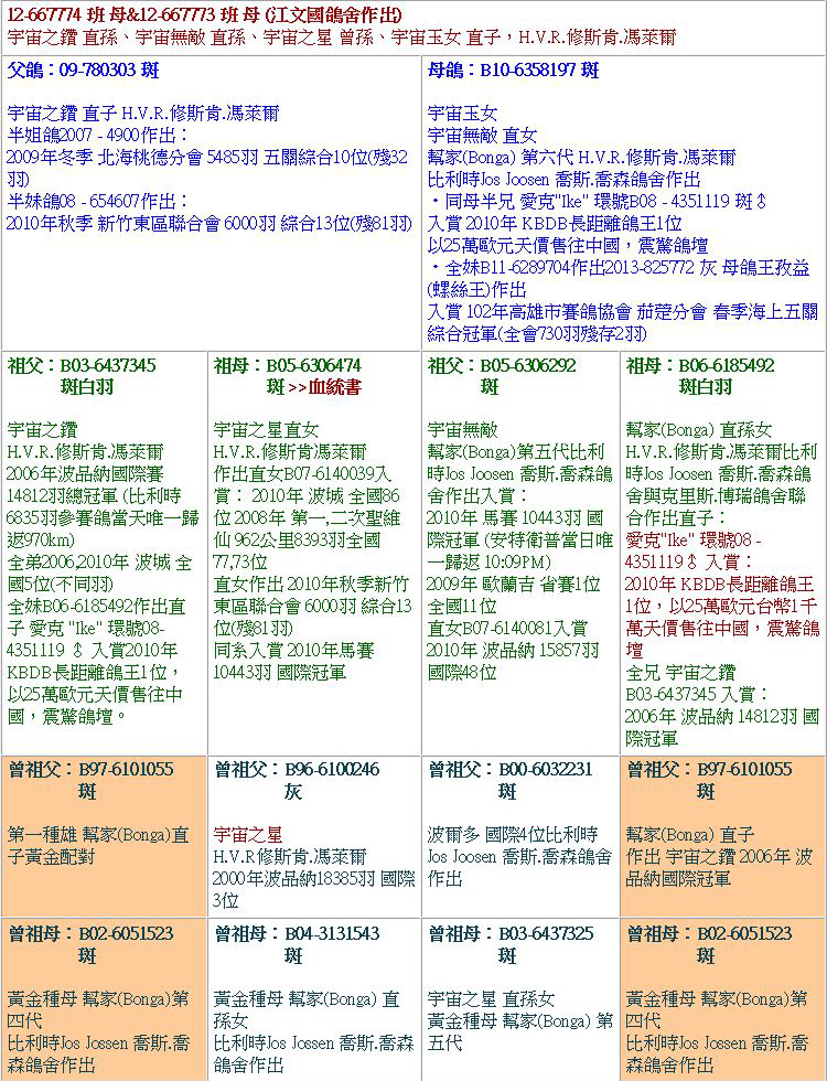 2010年 KBDB長距離鴿王1位 愛克"Ike" 同母半妹 )