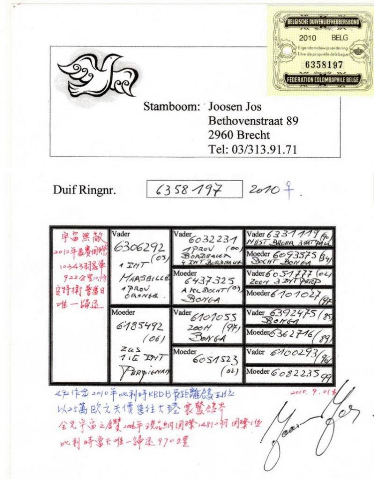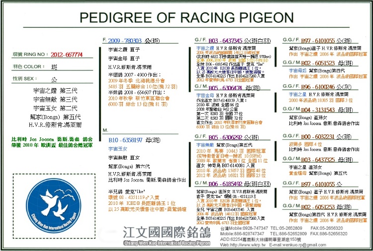 以25萬歐元台幣1千萬天價售往中國唐山開爾鴿業,震驚鴿壇。
