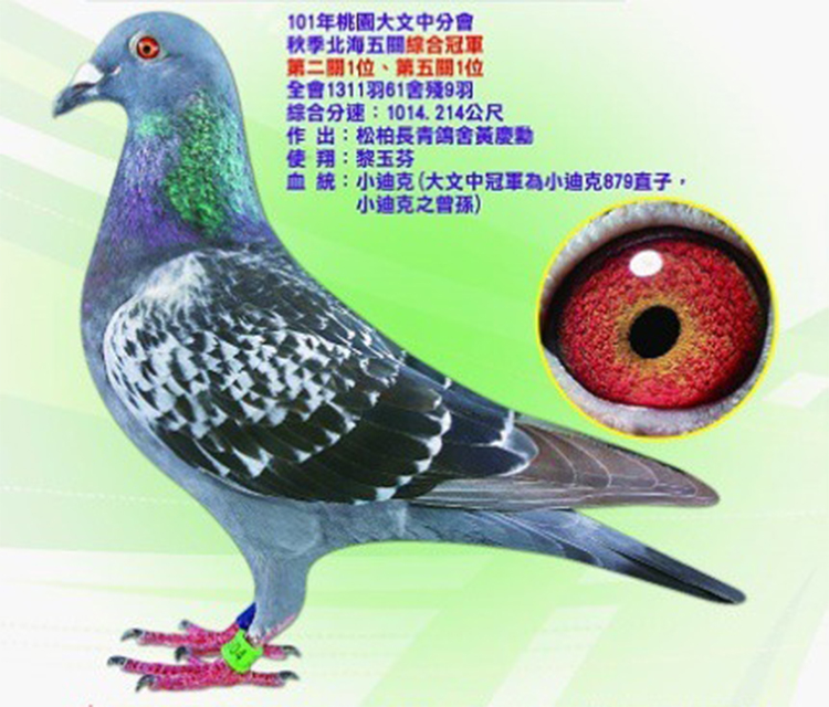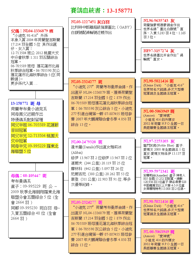 祖母277-來自世界名銘鴿416 小迪克(Kleine Dirk) ×949 愛神(Amore) 小迪克全妹玉明直女