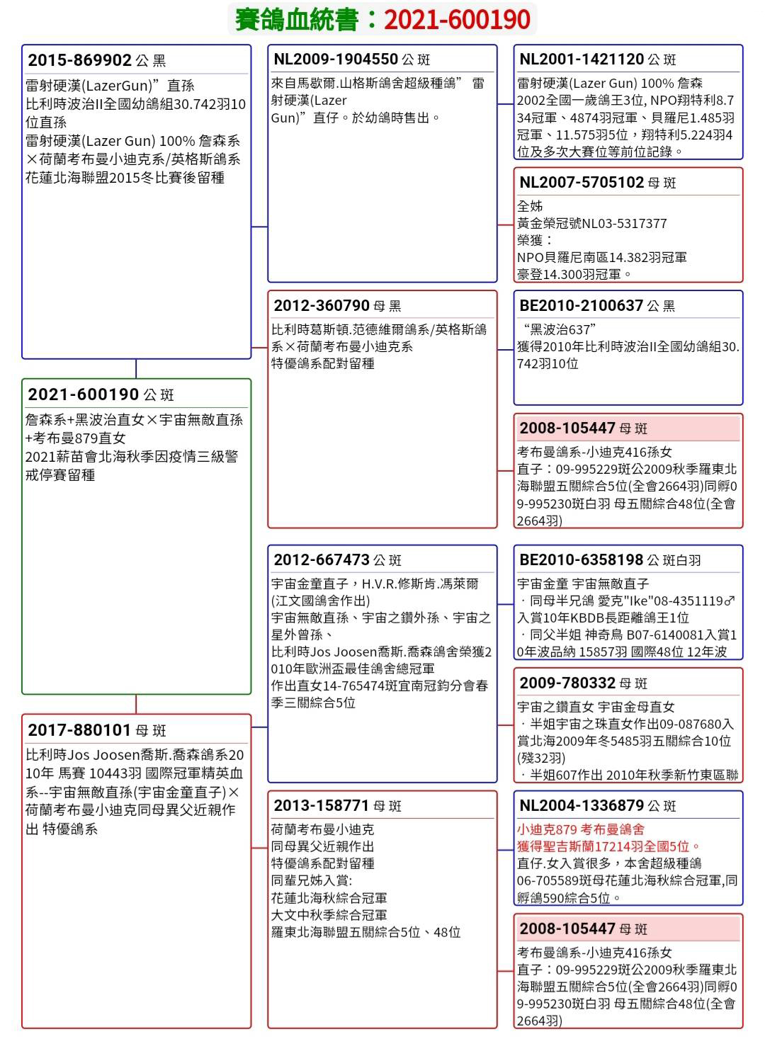 外祖父:達米羅號 來自"龍門灰將103"(小迪克同母半兄)×"安娜莉絲341"(小迪克全妹)近親作出
