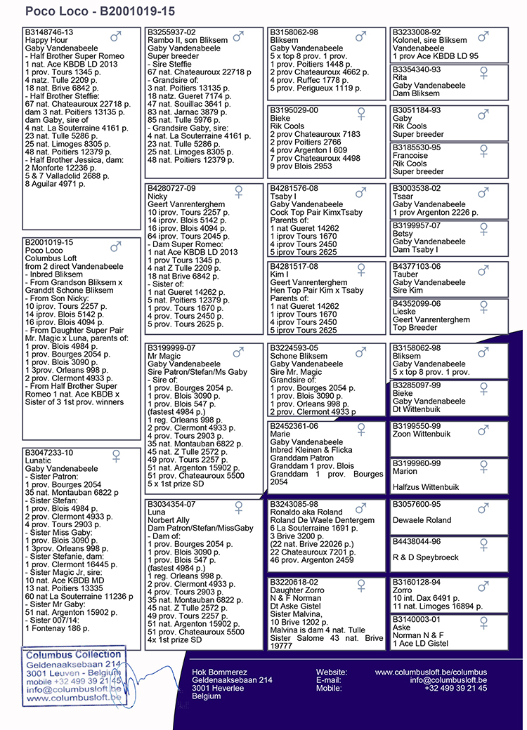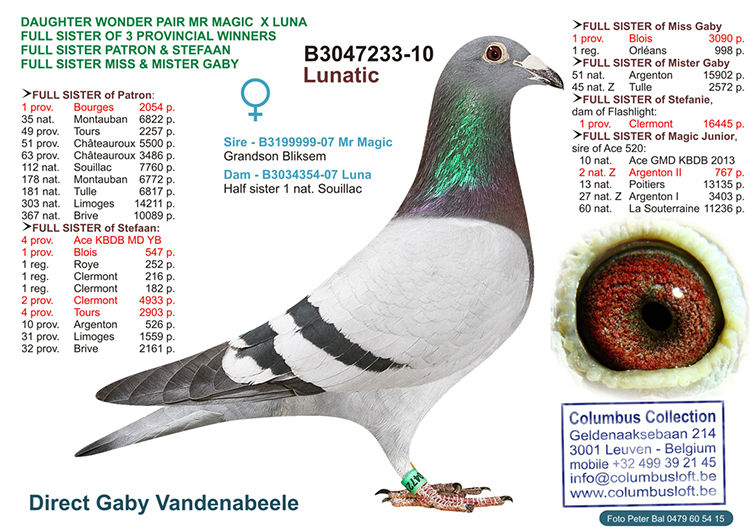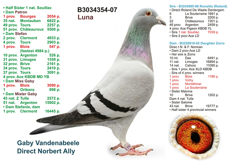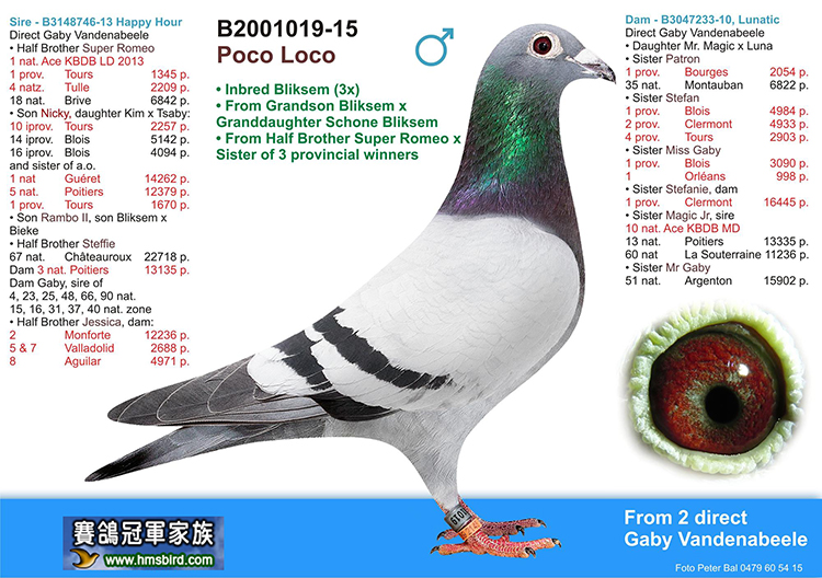 蓋比•凡德納比 原舍鴿“閃電號”家族精英血系