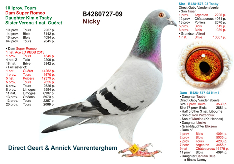 這羽『藍箭』配了很多有名的母鴿作出的下代極優秀,成了「諾曼王朝」早期鴿系的基礎。