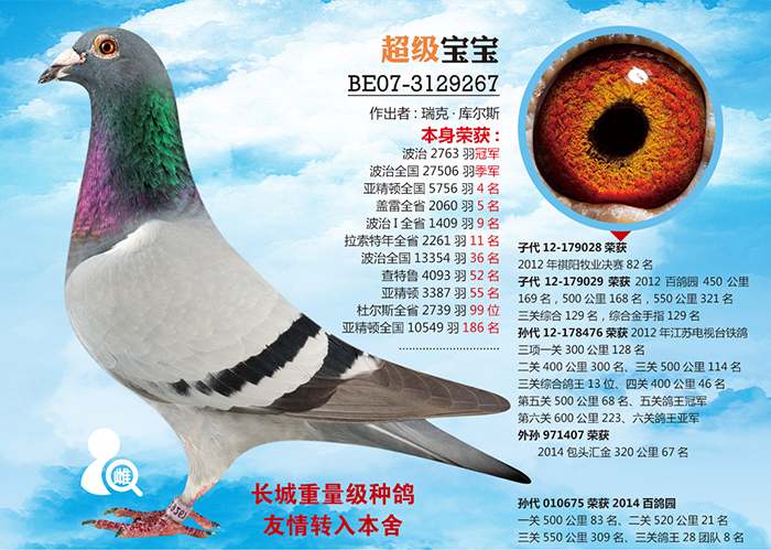 為超級種鴿”愛瑪號”入賞兩次省鴿王4位的直仔。