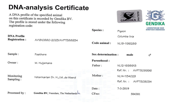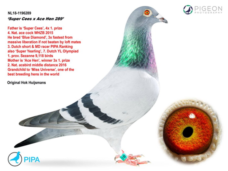 - 子代“皮婭”:2016 年NPO 克里爾12,496 羽冠軍&2017 年季末賽半省鴿王亞軍