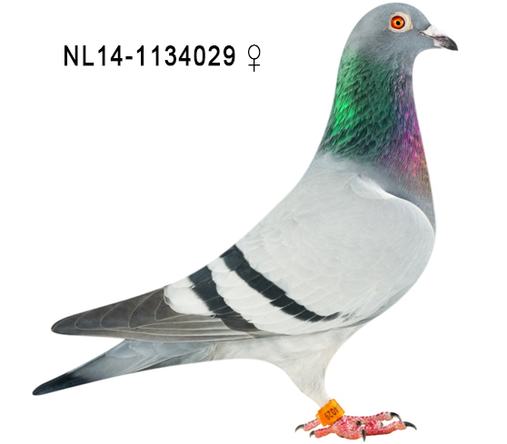 ●母:NL14-1134029 “雌鴿王”,績優賽將,出自考夫曼血系X “托波回血”,本身榮獲: